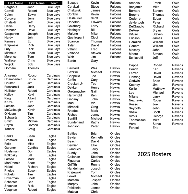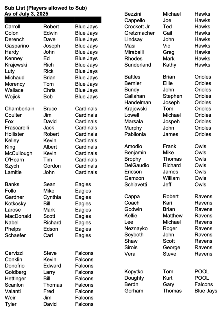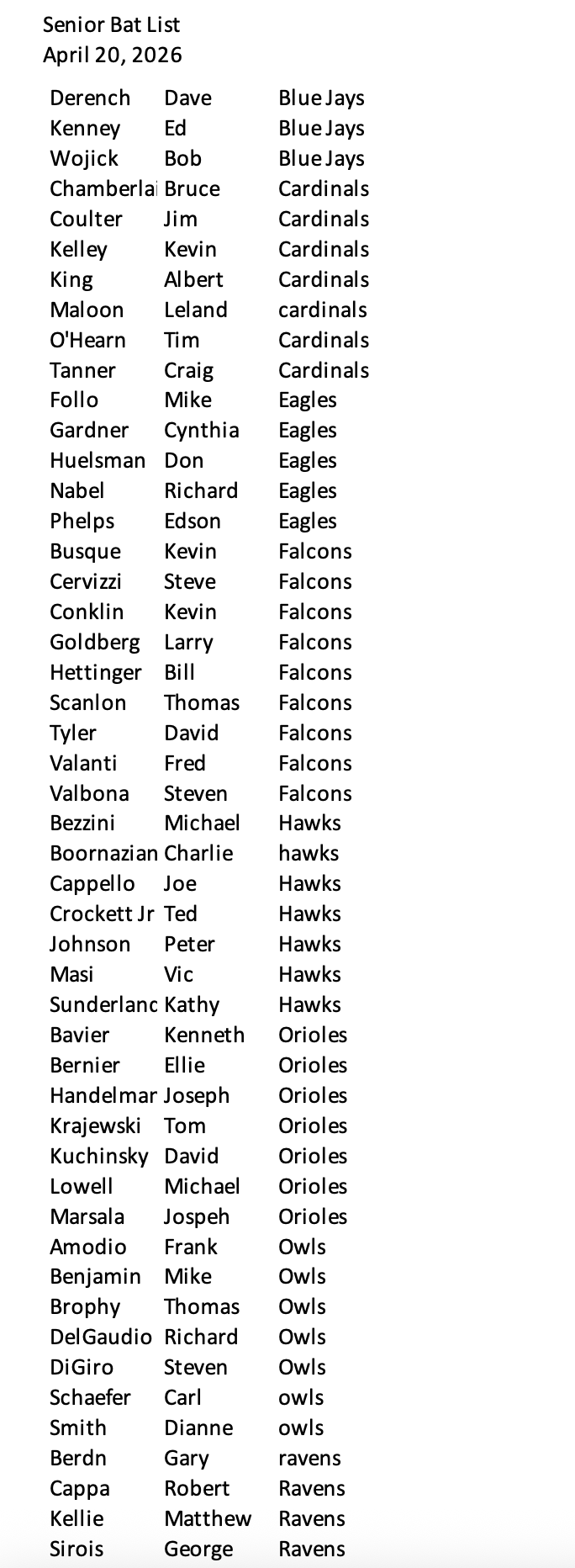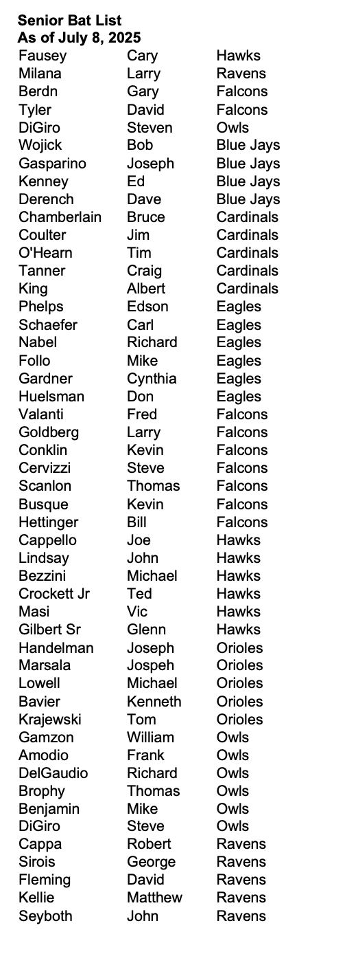 2025 Rosters Runner from Home List Sub List Senior Bat List Note: The Senior Bat List is for reference only. See Rules of Play if there is a question about a player’s eligibility to use a senior bat.